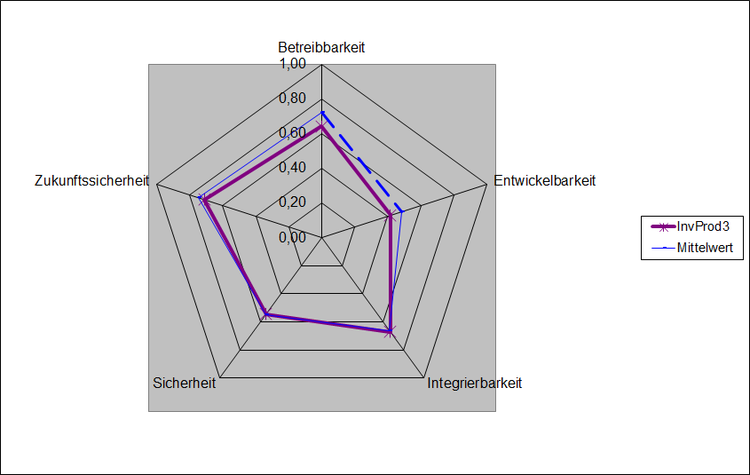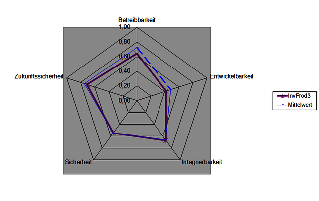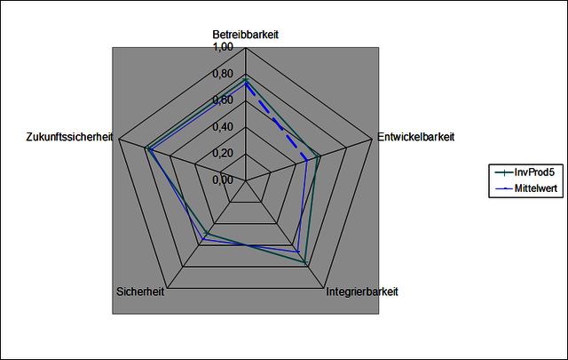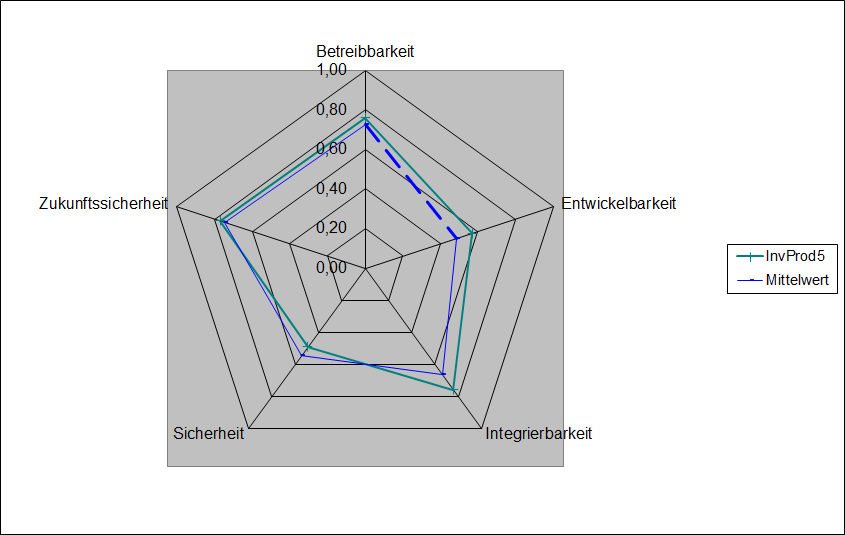 Je Hauptkriterium wird eine Achse angelegt, die das Ergebnis mehrere Kriterien abbildet. So bekommt jede Lösung ihre typische Darstellung und kann mit anderen Lösungen verglichen werden.